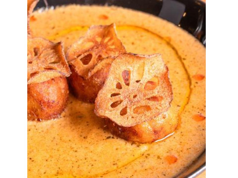 Jackfruit is a staple in traditional Indian cuisine. Its popularity has been rising globally because diners like its meaty texture. Jackfruit is very sustainable: it grows wild in India, it can grow in warm climates, does not need a lot of irrigation, is resilient to pests and disease, and yields a high amount of fruit per season! Come try the Jackfruit Kofta!